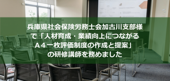 兵庫県社会保険労務士会加古川支部様で 「人材育成・業績向上につながるA4一枚評価制度の作成と提案」の研修講師を務めました!